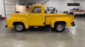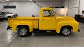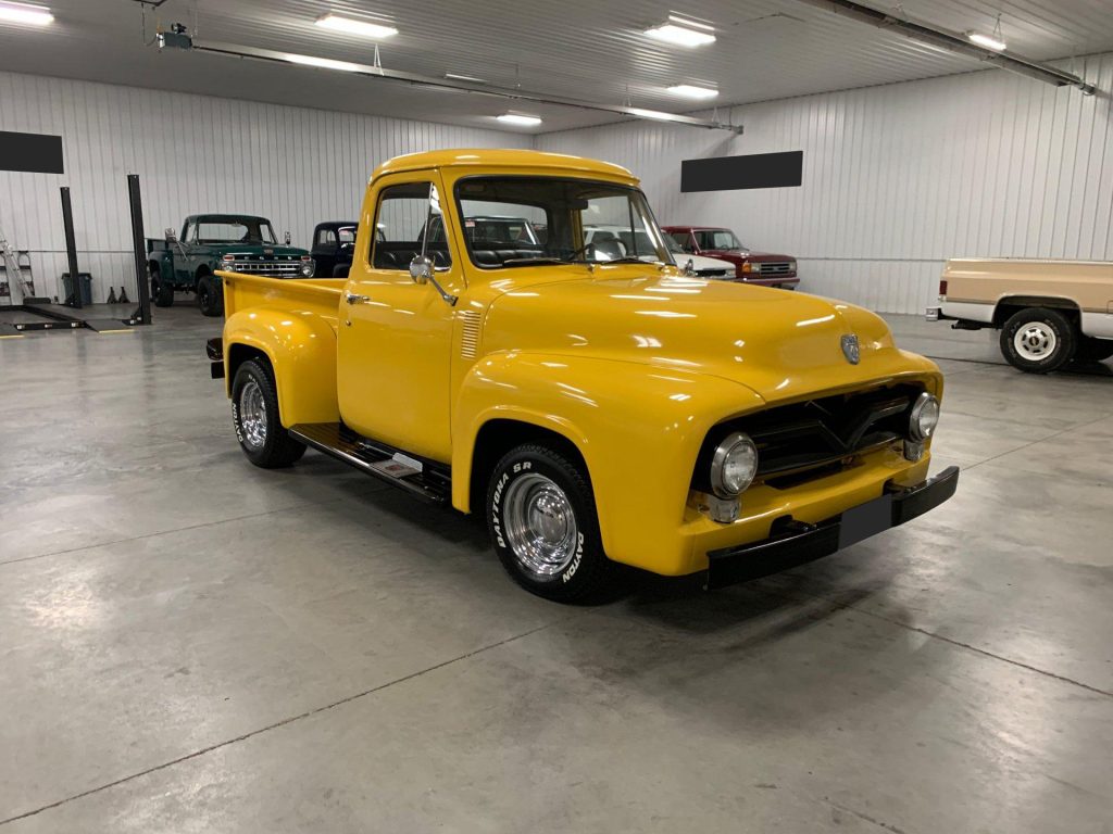 This 1955 Ford F100 is a really clean that truck that is an older restoration that was always stored indoors and only driven in the summer. The last owner owned this truck since the mid 60’s and restored it around 10 years ago and put around 10,000 miles on it in the spring, summer, and fall months. We purchased it from his widow and the truck still looks really nice and it runs and drives great! The body is really clean and it is a solid truck. He had it painted competition yellow when it was restored and the paint still looks excellent. The underside is also very clean and solid as you can see in the pics, wetherstripping and glass is in great shape, and the wood in the bed is all excellent. When it was restored the interior was also redone with custom seat and door panels, new carpet, color matched dash, and new headliner. Interior is also in great condition.