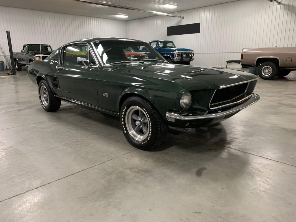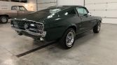 It is a pretty rare car because it is a factory GT with a Top-Loader 4 Speed manual Transmission. The car went through a complete restoration that took around 5 years and was completed a few years ago. The last owner’s goal was to make a Bullet Clone and he did a very nice job. We do have the original GT Rims with 3 original GT Center Caps, Original radio, and 1 Original Fog Light that will come with the car. The body on this car is very straight and really nice. We found no rust issues with this car anywhere and the paint is very nice and it is straight as well. It was repainted in the cars original color of Highland Green. All of the chrome and stainless is in nice condition and the lower body molding were painted to match how the Bullet car would have looked. The underside is also super clean as you can see in the undercarriage photos on our website. The interior was also restored and is excellent. All newly recovered seats and it also has the fold-down rear seat. New Carpet, new headliner, new door panels, new dash and dash bezel, new gauges…..you get the picture. Also all of the lights, gauges, wipers, heat are working. It is a well sorted out car.