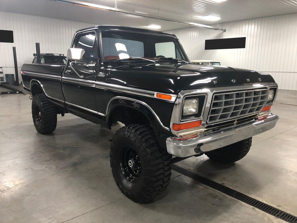 This 1978 Ford F150 4×4 Pickup was Frame Off Restored 3-4 years ago and it still looks excellent!!! the truck started as a rust free southern truck and the black paint is super straight and looks fantastic. The interior was also done at that time, and as you can see, it is excellent as well. The 351M V8 Engine was completely rebuilt from top to bottom. They added an aluminum intake, new carb, headers, dual exhaust. This thing runs excellent and drives just as nice. They also added a nice stereo with amp and subs behind the seat. It does have Power steering and Front Power Disc Brakes.