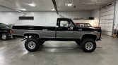 This 4WD truck features a Corporate 14 Bolt rear axle with 3.73 gears and limited slip, and a Dana 60 front axle also with 3.73 gears both completely gone through. The braking system is fully updated with 4-wheel disc brakes and all new lines and hoses. Sitting on a professionally installed 6-inch suspension lift with new springs, bushings, shocks, and greasable shackles, the truck rides on vintage-style slot wheels wrapped in 36-inch Goodyear Wrangler R/T tires.